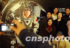 十一月十五日,夢(mèng)系太空——人類(lèi)航天事業(yè)歷程與成就展在北京中國(guó)科技館揭幕,來(lái)自北京華文學(xué)院的海外僑生們興致勃勃與心儀已久的太空英雄楊利偉合影留念。中新社記者:武仲林
