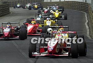 澳門三級方程式大賽車激烈進行中澳門第五十屆格蘭披治大賽車十六日舉行本屆最重要賽事--三級方程式大賽,圖為比賽激烈進行中。中新社記者:李剛