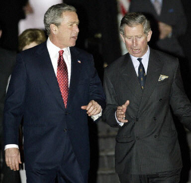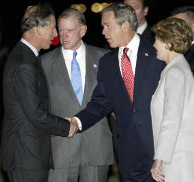 英國王儲查爾斯到倫敦希思羅機場迎接布什。