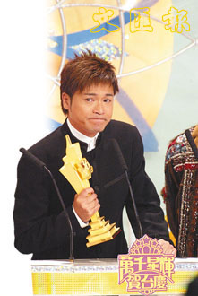 而“我最喜愛(ài)的男主角”一獎(jiǎng)中,賽前穩(wěn)操勝券的郭晉安眾望所歸,憑借對(duì)《憨夫成龍》里“阿旺”一角的出色表演奪獎(jiǎng)。領(lǐng)獎(jiǎng)時(shí)刻他激動(dòng)地感謝17年來(lái)支持他的人。郭晉安特別表示﹕“當(dāng)任何人都不相信我有機(jī)會(huì)站在頒獎(jiǎng)臺(tái)做男主角時(shí),很感謝梁家樹(shù)(無(wú)線戲劇組高層)給予我信心!