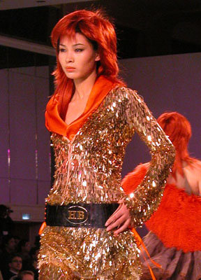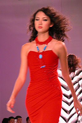 中國(guó)國(guó)際時(shí)裝周上東北虎皮草公司宣布中國(guó)推出第一個(gè)高級(jí)晚裝品牌NE·TIGER,圖為高級(jí)皮草晚裝展示玫瑰紅個(gè)性色調(diào)皮草。