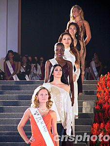“你--好!海--口!你--好!海——南!你——好!中——國(guó)!”當(dāng)美女們用新學(xué)會(huì)的漢語(yǔ)向海島的人民問(wèn)候時(shí),全場(chǎng)兩萬(wàn)多觀眾高聲回應(yīng):“你好!世界小姐!”