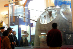 據(jù)悉,已有數(shù)千名北京市民24日來到北京展覽館,觀看在該展會(huì)中亮相的“神舟五號(hào)”返回艙、主降落傘,還有楊利偉穿過的太空服、吃過的太空食品等。