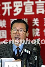 中新社北京十二月一日電(記者路梅)國務(wù)院臺(tái)灣事務(wù)辦公室副主任、海研中心顧問王在希一日在此間舉行的紀(jì)念《開羅宣言》發(fā)表六十周年座談會(huì)上再次強(qiáng)調(diào),臺(tái)灣是中國神圣領(lǐng)土不可分割的一部分,中國政府決不容許某些人以任何方式把臺(tái)灣分割出去。
