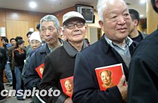 一代偉人毛澤東誕辰110周年前夕,百余名購買了紀(jì)念毛澤東書籍的北京市民在王府井圖書大樓排成長隊(duì),靜靜地等候毛澤東之孫毛新宇的簽名,以寄托對毛澤東的深情懷念。中新社記者:史利
