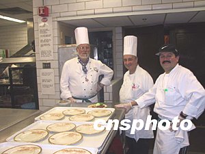 美國國務(wù)院大廚正在準(zhǔn)備迎接溫總理的晚宴。中新社記者 余東暉 攝