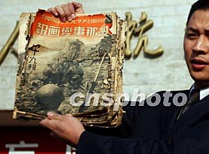 十二月十三日,溫州晚報社將珍藏的幾本揭露當(dāng)年侵華日軍罪行的珍貴畫冊捐贈給中國抗日戰(zhàn)爭紀(jì)念館,以紀(jì)念南京大屠殺遇難的30多萬同胞。中新社記者:武仲林