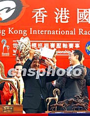 世界馬壇盛事──香港國(guó)際賽馬日十二月十四日在此間沙田馬場(chǎng)舉行,其包括香港杯、香港瓶、香港一哩錦標(biāo)、香港短途錦標(biāo)以及六場(chǎng)本地賽事,香港隊(duì)榮獲短途錦標(biāo)和一哩錦標(biāo)兩項(xiàng)桂冠。圖為香港“精英大師”獲短途錦標(biāo)頭馬后,受到全場(chǎng)馬迷歡呼。中新社記者:潘索菲