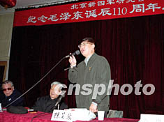 十二月十六日,北京新四軍研究會(huì)在京隆重舉行“紀(jì)念毛澤東誕辰一百一十周年座談會(huì)”,新四軍研究會(huì)會(huì)長張铚秀將軍(中),副會(huì)長魯冰將軍(左),副會(huì)長、中國人民對外友好協(xié)會(huì)會(huì)長陳昊蘇(右)與新四軍所屬各師分會(huì)代表近二百人共同緬懷了毛澤東領(lǐng)導(dǎo)人民驅(qū)逐日寇,建立新中國,開拓中華復(fù)興之路的豐功偉績。作者:徐曦弋