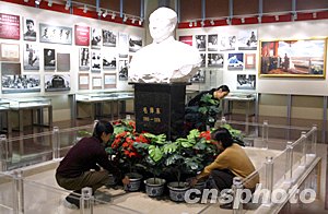 2003年12月26日是毛澤東誕辰110周年,位于北京天安門廣場上的毛主席紀(jì)念堂將舉辦多項活動隆重紀(jì)念,紀(jì)念堂中的“毛澤東展室”經(jīng)過精心布置準(zhǔn)備接待參觀者。中新社記者:任晨鳴