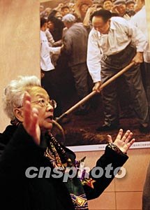 毛澤東女兒李訥(中)與親友十二月十九日在北京國家博物館舉行的“毛澤東檔案展”開幕式上,觀看歷史圖片和百余件毛澤東書信手跡等陳列品。中新社記者:鄒憲