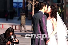 圖:冬至日新郎新娘拍攝街頭婚紗照