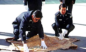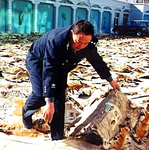 拉薩海關(guān)緝私局副局長李建文撣撣身上的土告訴記者,10月10日他們將這批動物皮張從查獲地點運回拉薩海關(guān)時,動用了全部警力,花了3個小時才將皮張數(shù)量點清。他說,根據(jù)黑市上的價格,這批動物皮張的總價值超過1000萬元!爱(dāng)然,由于孟加拉虎、金錢豹和水獺都是瀕危動物,依照國家法律和國際公約都是明令禁止射殺、販賣的,所以它們的價值遠非金錢可以衡量!崩罱ㄎ耐瑫r強調(diào)。