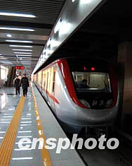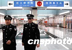 圖:北京警方加強地鐵八通線通車前的安全檢查