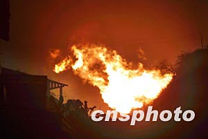 圖:重慶開縣天然氣井噴事故24日晚井噴現(xiàn)場