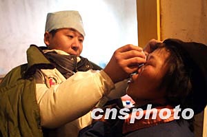 十二月二十三日二十二點十五分,位于重慶市開縣境內的川東北氣礦發(fā)生天然氣井噴事故。在事故現(xiàn)場臨時救助站內,醫(yī)生通宵值班確保災民及時就診。作者:鄒輝