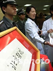 圖:毛主席為北京醫(yī)院題寫院名的原件展出