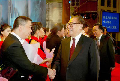 音樂(lè)會(huì)結(jié)束后,江澤民、溫家寶、曾慶紅、吳官正、李長(zhǎng)春等黨和國(guó)家領(lǐng)導(dǎo)人走上舞臺(tái),與參加演出的演員親切握手,祝賀演出成功。