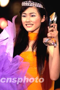 十二月二十八日晚,二十歲的北京選手劉丹在深圳世界之窗獲得二00三精英世界模特大賽中國(guó)總決賽冠軍。作者:陳文
