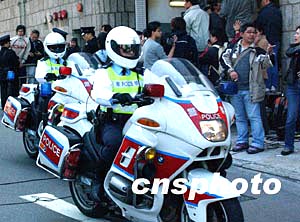 香港藝人梅艷芳因病于十二月三十日凌晨二時五十分在香港病逝,在香港養(yǎng)和醫(yī)院前大批警察維持秩序。中新社記者:錢興強