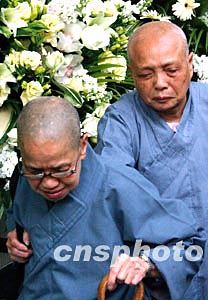 香港著名藝人梅艷芳喪禮于元月十一日設(shè)靈公祭,兩位法師來到香港殯儀館拜祭梅艷芳。中新社記者:錢興強(qiáng)