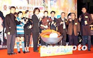 中新網(wǎng)1月14日電 F4之一的言承旭,雖然比其他三位拍檔拍港產(chǎn)片晚,但他的吸引力依然不減,他初次主演的港產(chǎn)片《魔幻廚房》前晚舉行首映禮,他的出現(xiàn)吸引數(shù)百Fans圍滿整個時代廣場,比起“地頭蟲”鄭秀文的受歡迎程度更有過之而無不及。