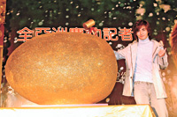 唱片公司更特別為仔仔舉行一個(gè)別具意義的“破金雞蛋”慶功儀式,因?yàn)樽凶猩匐u,“破金雞蛋”除喻意仔仔是一只會下金雞蛋的“公雞”,也希望這次新專輯能繼續(xù)熱賣,突破五十萬張!