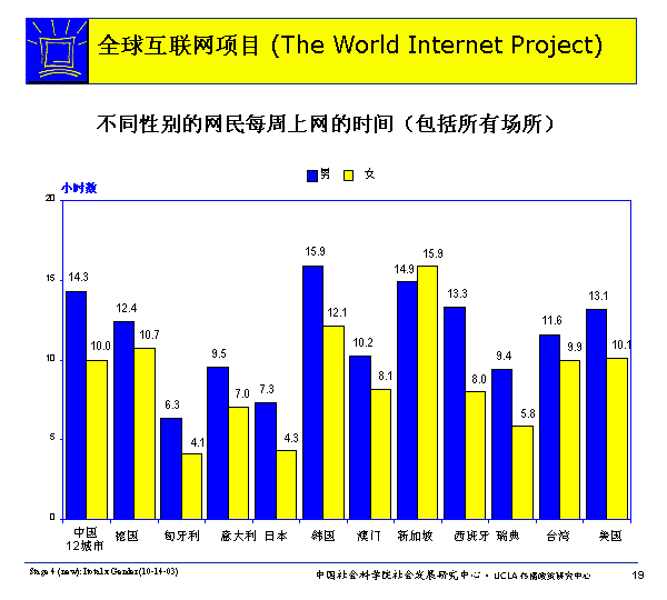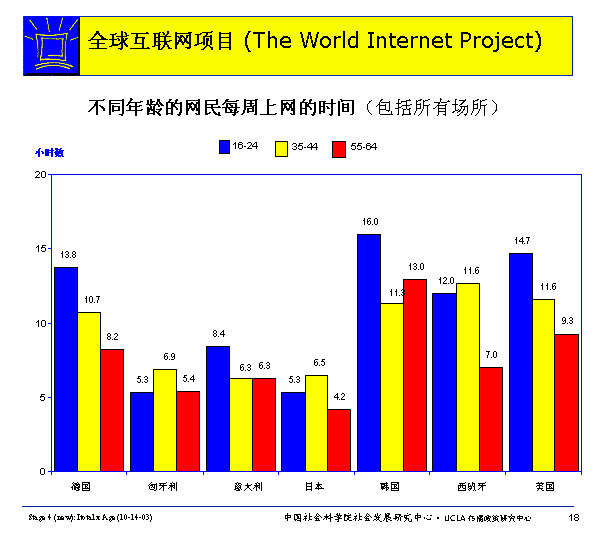 各國(guó)用網(wǎng)狀況:不同年齡、性別網(wǎng)民每周上網(wǎng)時(shí)間
