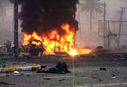 爆炸發(fā)生后,至少四輛汽車以及總部大院的磚墻均被籠罩在一片濃煙當中,這座大院原先是薩達姆的一座宮殿。事發(fā)后,一些機械化車輛以及坦克立即對附近的街區(qū)進行了封鎖。