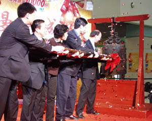 廟會(huì)開幕式上,商城總經(jīng)理與顧客一些撞響開幕鐘。甄雪原攝