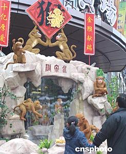 猴年將至,俏皮可愛(ài)的“金猴”成為了申城街頭迎新賀春的主角。二十日,一組生動(dòng)活潑的“金猴鬧春”賀年景觀吸引了不少路人。中新社記者:湯彥俊
