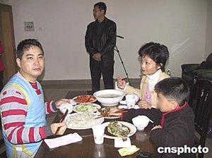 因涉嫌在海南從事間諜活動被拘押的臺灣人宋孝濂,一月二十日在有關(guān)部門的安排下與前來探視的妻子和兒子吃團(tuán)圓年飯。作者:王辛莉