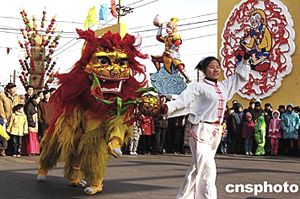 北京民眾最喜愛(ài)的廠甸廟會(huì)在春節(jié)之際拉開(kāi)帷幕,來(lái)自四面八方的民間藝人在此展示才藝術(shù),切磋中國(guó)傳統(tǒng)的民間藝術(shù)文化。圖為一女青年表演醒獅舞。中新社記者:鄒憲