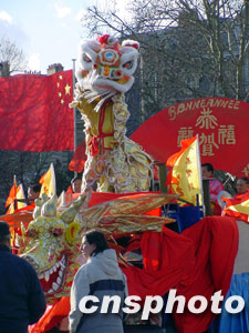 在北京和巴黎兩個(gè)友城的市長為游行舉行點(diǎn)睛儀式后,“拜年彩車”為游行拉開大幕。在春節(jié)序曲的樂曲聲中,象征年年有余的大紅鯉魚將向觀眾送上新春的祝福。