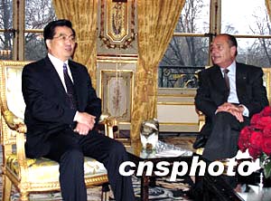 中新網(wǎng)1月27日電 據(jù)新華網(wǎng)報道,正在法國進行國事訪問的中國國家主席胡錦濤與法國總統(tǒng)希拉克27日上午在愛麗舍宮舉行會談。