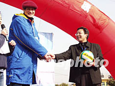 第十屆全國運動會將于二零零五年在江蘇舉行,二月五日江蘇省洪澤籍的中國女排副攻手趙蕊蕊委托父親將中國女排全體隊友簽名的排球送給家鄉(xiāng)父老鄉(xiāng)親,鼓勵大家健身奔小康。作者:丁東升