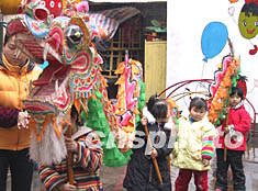 圖:重慶農(nóng)村兒童元宵佳節(jié)學(xué)舞龍