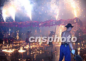 正月十五元宵節(jié),重慶村村點火把,鎮(zhèn)鎮(zhèn)舞龍燈。在“中國龍燈之鄉(xiāng)”銅梁縣傳統(tǒng)的“火龍”通體透亮,金燦燦的火花在空中飛濺,光閃閃的巨龍在夜空中呼嘯起舞,上下翻飛。作者:范卉