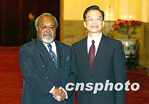 組圖:溫家寶會見巴布亞新幾內(nèi)亞總理索馬雷