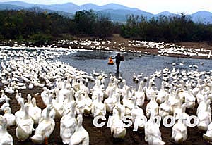 據(jù)中央電視臺報道,在采訪團(tuán)去南寧當(dāng)?shù)刈畲蟮囊粋種雞場途中,幾名記者突然發(fā)現(xiàn)路邊有成群的鴨子,數(shù)量可能超過一千只。大家要求停車并進(jìn)行了拍攝。