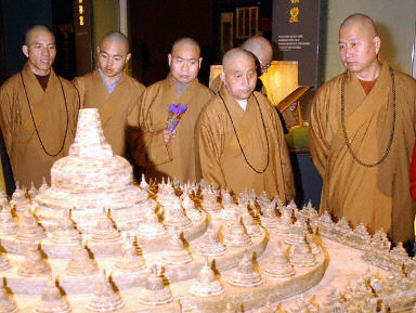 河南少林寺僧眾2月12日參觀臺北的世界宗教博物館。