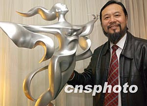 為紀(jì)念諾曼底登陸六十周年,應(yīng)法國(guó)諾曼底政府的邀請(qǐng),由中國(guó)著名藝術(shù)家遙遠(yuǎn)先生創(chuàng)作的巨型雕塑作品《世界和平女神》,將于2004年6月6日紀(jì)念諾曼底登陸六十周年活動(dòng)期間聳立在法國(guó)諾曼底登陸的中心位置。圖為近日遙遠(yuǎn)先生在香港向傳媒介紹他的雕塑作品《世界和平女神》(模型)的藝術(shù)創(chuàng)作過程及感想。作者:錢興強(qiáng)
