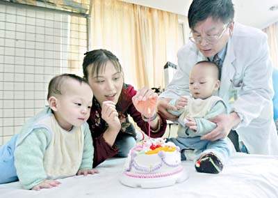 剖腹產(chǎn)后,令人驚喜的情景出現(xiàn)了———母親的非典癥狀逐漸解除,兩周后康復(fù),而誕下的雙胞胎楚楚和陽(yáng)陽(yáng)都沒(méi)有感染。