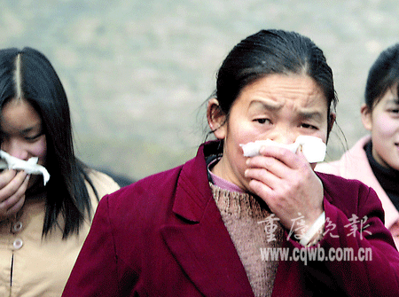 昨日9時(shí)許,重慶天原化工總廠發(fā)生泄漏事故,據(jù)調(diào)查小組分析后認(rèn)為,泄漏的是氯化氫氣體,污染了大水井合作社與雞心石合作社,附近居民先后出現(xiàn)流淚、咳嗽等現(xiàn)象。苗兒石小學(xué)500多名師生當(dāng)時(shí)正在上興趣課,9時(shí)30分左右,一種霧狀刺鼻氣體開始在全校彌漫開來,并幾乎將全;\罩,“突然來的氣體熏得睜不開眼了。老師忙喊快走快走!”補(bǔ)課的學(xué)生緊急疏散。該校三年級一位姓張的小朋友說,跑出教室才發(fā)現(xiàn),全校的同學(xué)都捂著鼻子往家跑了。