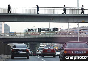 二月十六日上午,北京市區(qū)的西三環(huán)交通一片繁忙。北京市代市長王岐山當天在北京市十二屆人大第二次會議上做《政府工作報告》時提出,北京要加快交通設(shè)施建設(shè)速度,逐步緩解城市交通擁堵。中新社記者:滿會喬