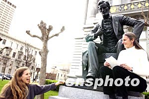 相戀十二年的諾艾爾(左)和黛安娜(右)是二月二十日從舊金山市政府領(lǐng)到結(jié)婚證書的第七十二對同性伴侶,她們和其他同性伴侶一樣在市政廳外的林肯像前合影。從二月十二日起,舊金山市政府決定給同性戀者發(fā)放結(jié)婚證書,舊金山一時(shí)成為同性戀者向往的地方。作者:陳鋼