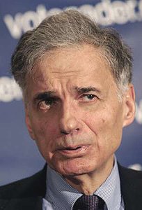 本周即將年滿七十的納德二000年曾經(jīng)以綠黨候選人的身份參與總統(tǒng)大選角逐,雖然僅獲得百分之二點(diǎn)七的選票,但因?yàn)椴际苍诜鹆_里達(dá)和新罕布什爾兩州僅以微弱的優(yōu)勢(shì)壓倒戈?duì)枺〉眠@兩州的選舉人票而登上總統(tǒng)寶座,民主黨人認(rèn)為納德的得票分流了本來支持戈?duì)柕倪x民,導(dǎo)致戈?duì)柭鋽 ?div align="left">