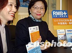 中信嘉華銀行二月二十六日在香港推出優(yōu)越個人人民幣服務(wù),“RMB+中港一線通服務(wù)”,包括個人人民幣服務(wù)及與CEPA相關(guān)的商業(yè)服務(wù),專為需要中國有關(guān)的銀行服務(wù)客戶提供增值的財務(wù)配套支持。圖為該銀行執(zhí)行副總裁林劉德美(右)和高級副總裁李笑英向傳媒介紹優(yōu)越個人人民幣系列服務(wù)內(nèi)容。作者:錢興強(qiáng)