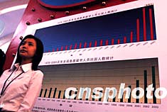 二月二十九日,北京舉行有始以來最大規(guī)模的留學(xué)人員回國創(chuàng)業(yè)成就展覽。展覽會上的圖表清晰顯示:新世紀(jì)以來,留學(xué)人員回國大幅度增加,二零零三年全國留學(xué)人員回國人數(shù)首次突破兩萬人。據(jù)介紹,從一九七八年至去年,中國各類出國留學(xué)人員總數(shù)已達(dá)七十多萬人,分布在世界上一百多個國家和地區(qū),累計回國留學(xué)人員達(dá)到十七萬多人。中新社記者:王麗南