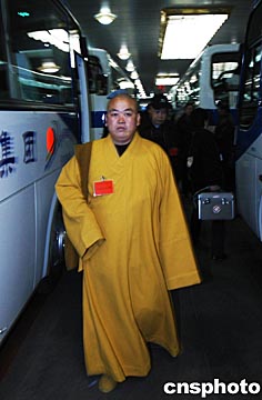 三月二日清晨,河南省人大代表團(tuán)乘火車到達(dá)北京,中國(guó)著名的佛教圣地--登封少林寺方丈釋永信隨團(tuán)抵達(dá)。作為全國(guó)人大代表的釋永信方丈,還是中國(guó)佛教協(xié)會(huì)的副會(huì)長(zhǎng)。作者:慎重